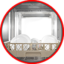 -CLIMA-WIND 排熱系統能夠加快機器內部重要部件散熱;而同時又不影響餐具的烘干效果。