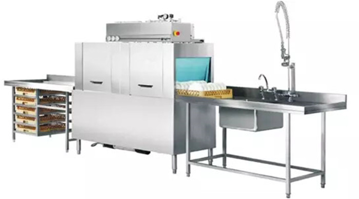 所謂的一體式洗滌和耗散機是將高溫清洗,高溫干燥,消毒和高溫遠紅外消毒集成在一起的商用洗碗機。與其他長壽命洗碗機不同,我們公司的集成式洗凈耗散機可進行清洗。無需放置特定的化學洗滌劑和烘干機。熱水和普通洗滌劑可用于清潔并達到相同的效果。下面,我將為您簡要介紹長期清洗和內置機器處置。工作流程:使用機器時,只需要兩個人就可以操作機器,一個人站在機器前,一個人在機器末端拾起碗碟。首先,將碗碟浸濕以便于除渣,然后將碗碟向下放,將其平放在傳送帶上,機器將自動進入內部,到達高壓預洗水箱和高壓主洗水箱。餐具將通過高壓循環上下洗滌兩次,以除去殘留在餐具表面上的殘留物以及油和水,這樣餐具就可以達到除渣和脫脂的效果,然后到達噴灑區域。該機器使用70-80度的熱水在高壓下來回循環。洗碗以達到最終的清潔效果。餐具完全清潔后,將通過循環熱空氣和高溫遠紅外線進行干燥。消毒,徹底干燥和消毒餐具。經過這一系列的兩個清洗循環,一次漂洗和三段100-120+紅外高溫消毒通道,可以對餐具進行充分消毒并符合衛生標準。