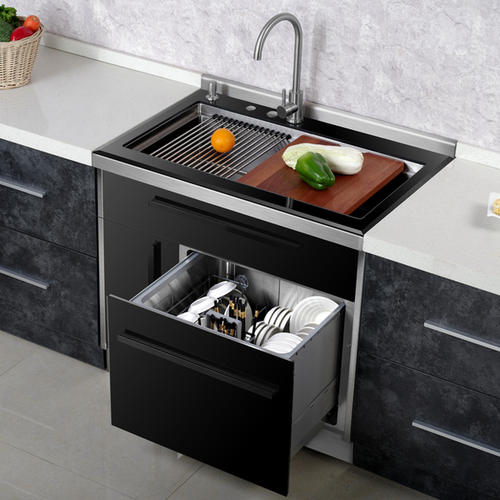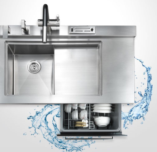 整體設(shè)計(jì)的一體化水槽洗碗機(jī),比傳統(tǒng)的嵌入式洗碗機(jī)更美觀(guān)。生產(chǎn)能力較大,適合2-8口人使用。