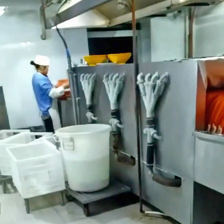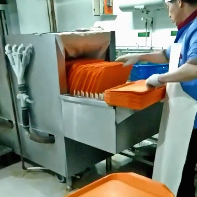洗滌量和洗滌速度:洗碗機的洗滌量是很多人購買時最關注的方面,通常長龍式洗滌復合機可以在1小時內洗滌密胺餐盤1000-1200個,洗滌湯盤2000個左右,即使餐具的形狀不同,數量也不用擔心,一次可以放入餐盤進行洗滌。