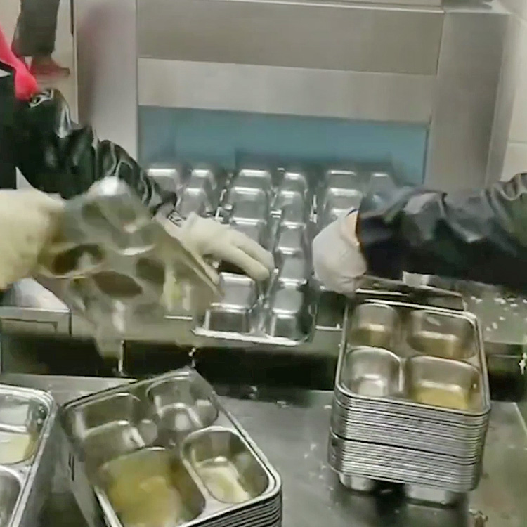 要知道學(xué)校食堂使用的餐具種類較多,多為不銹鋼餐盤、碗或密胺餐具、盒等。若用人員手工或傳統(tǒng)的洗碗法清洗餐具,清洗工作量大,清洗效率低,勞動(dòng)強(qiáng)度大,洗碗工手工參與多,餐具的清潔程度人為控制因素越多,不好管控,如果換成機(jī)器洗的話那就好辦多了,對(duì)不銹鋼餐具、塑料餐盒等相對(duì)瓷質(zhì)餐具來說,不易清洗,清洗后總覺得油膩、滑膩,特別是水溫不夠或冷水手工清洗時(shí),更明顯,另外人工清洗會(huì)消耗更多的洗滌劑,除了這些之外還要考慮電量和水的消耗也會(huì)更加多。